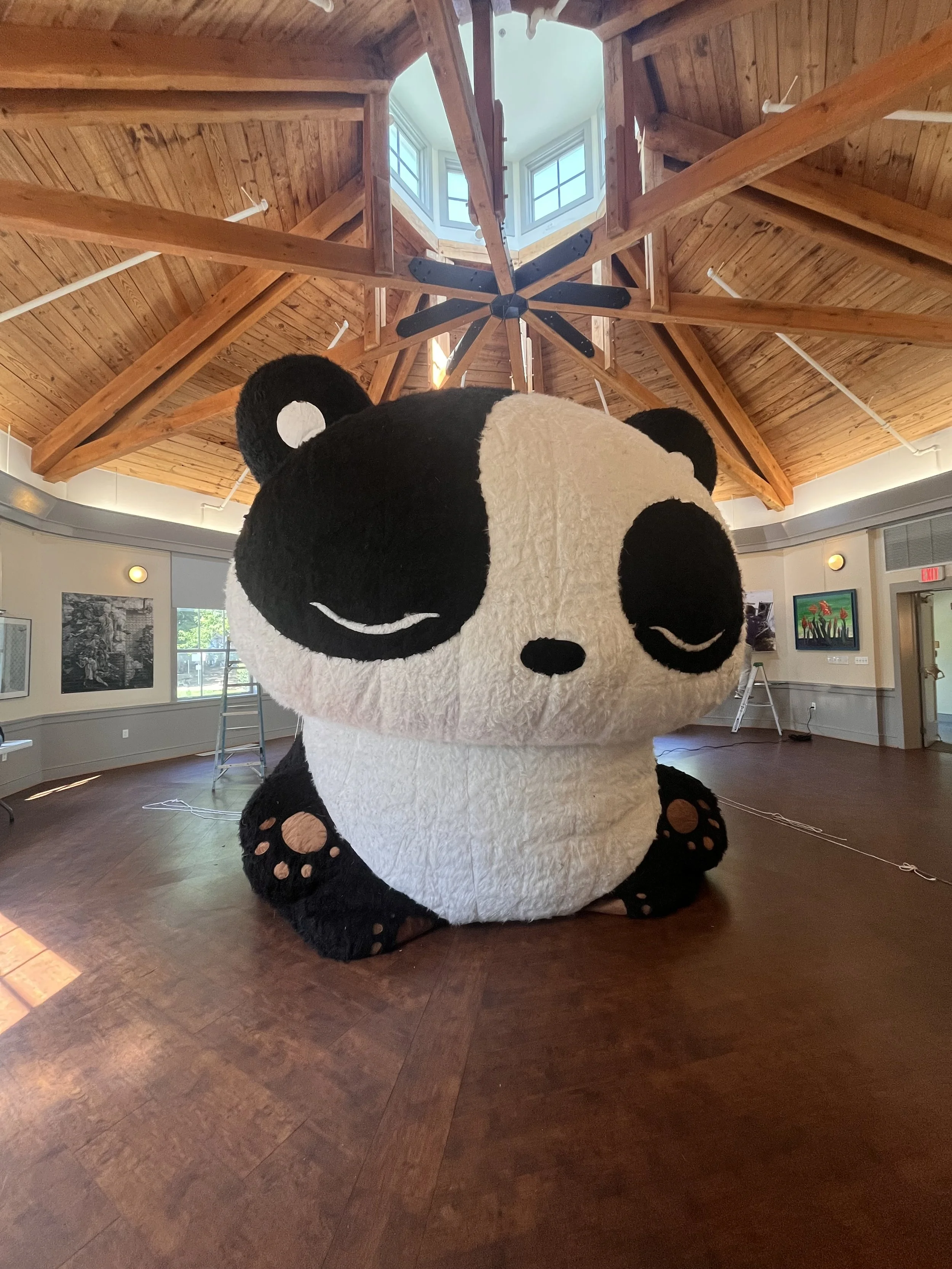 The panda has arrived! Although we originally planned to install the sculpture outdoors, our panda friend—who comes from the cool mountains of China—wasn't too fond of Maryland's summer heat. So, we've invited him inside the museum to enjoy the air conditioning!