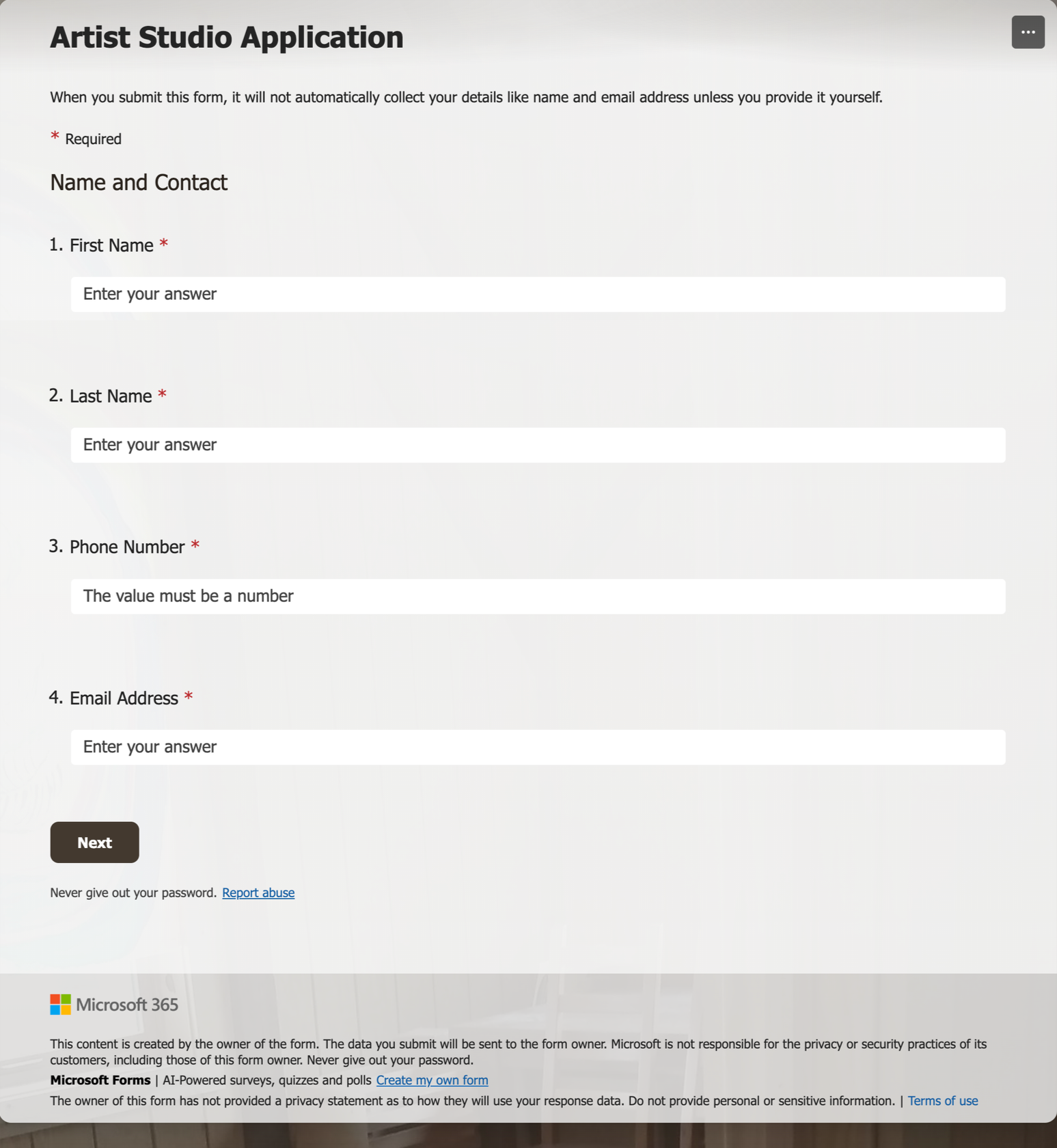 Interested in renting a studio? Please submit an application below if you would like to be considered. Please send any questions to exhibit coordinator Yu Jie